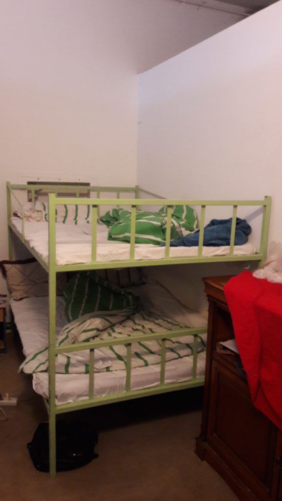 Două locuințe, așezate la cele două extreme a unei scări edilitare: pe de o parte locuința socială cu mica ei cameră în care erau așezate 4 paturi suprapuse, destul de late, pentru a încăpea la nevoie mai mulți, și pe de altă parte, palatul de peste drum, în care nu am intrat. Nici nu mi-aș fi propus și nici nu aș fi dorit!